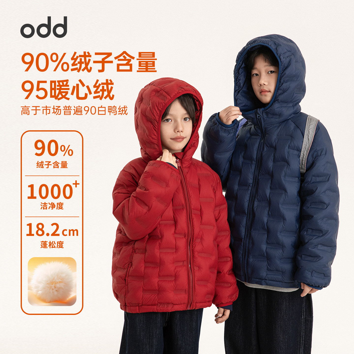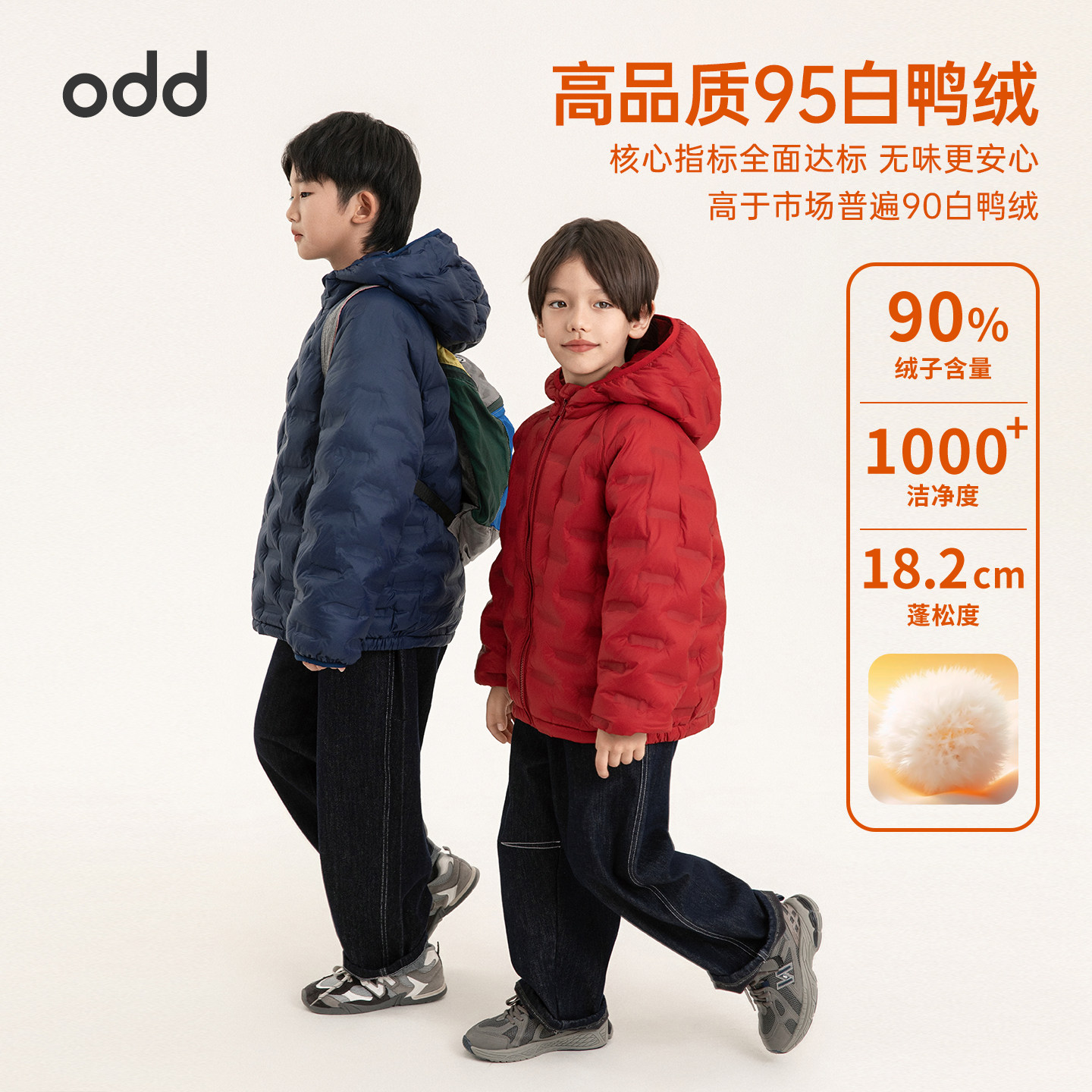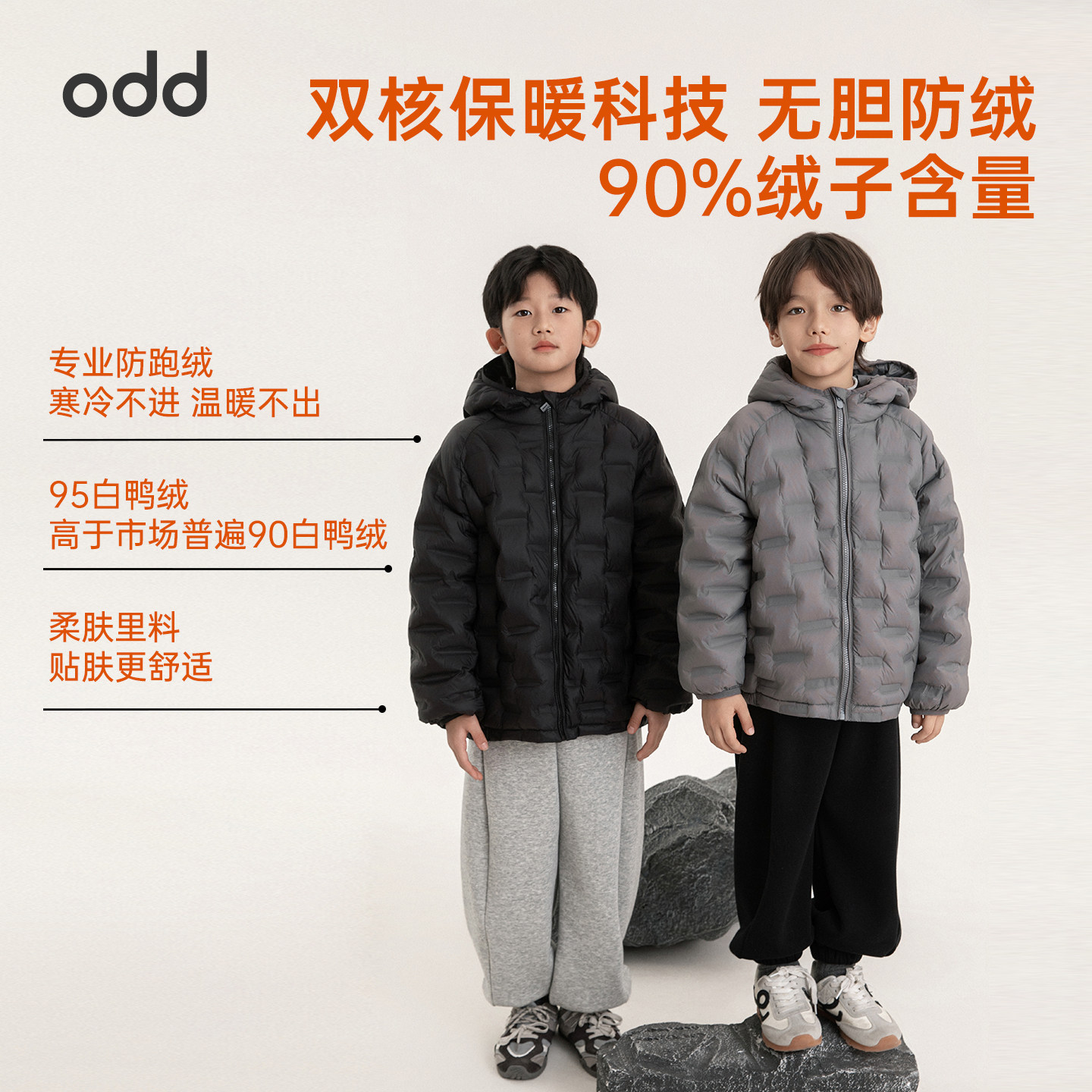 oddtails男童轻薄羽绒服纯色抗寒冬装 秋冬中大童连帽外套 2025新款