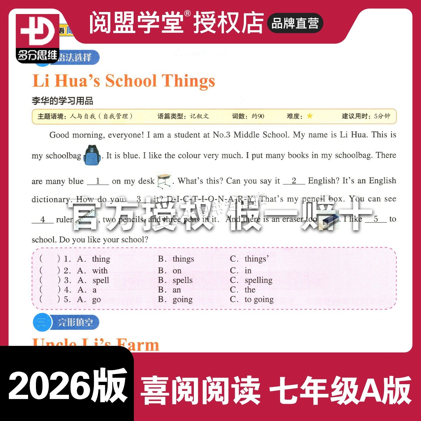 广东专用 广东专用版 2026版 喜阅阅读英语七年级A版 第3次升级初一7年级上册多分英语多分思维化训练专项提升练习 新版