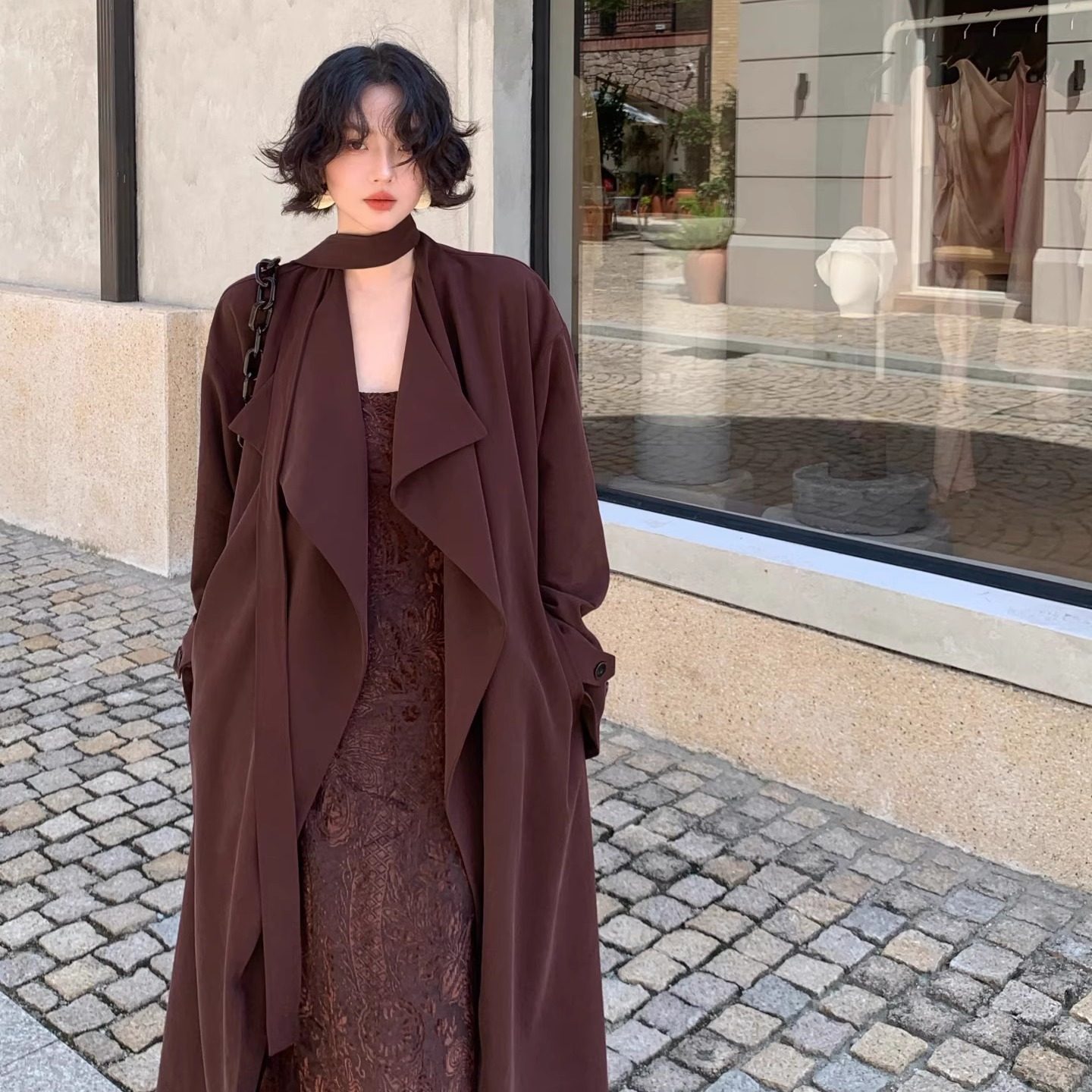 翻领风衣大衣宽松长款 酒午自制 新款 港风复古春款 外套 巴黎旧梦