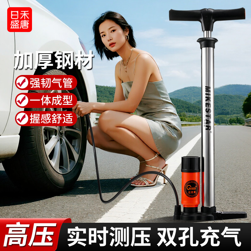 打气筒自行车电动电瓶车汽车便携气管子家用高压泵篮球通用气泵