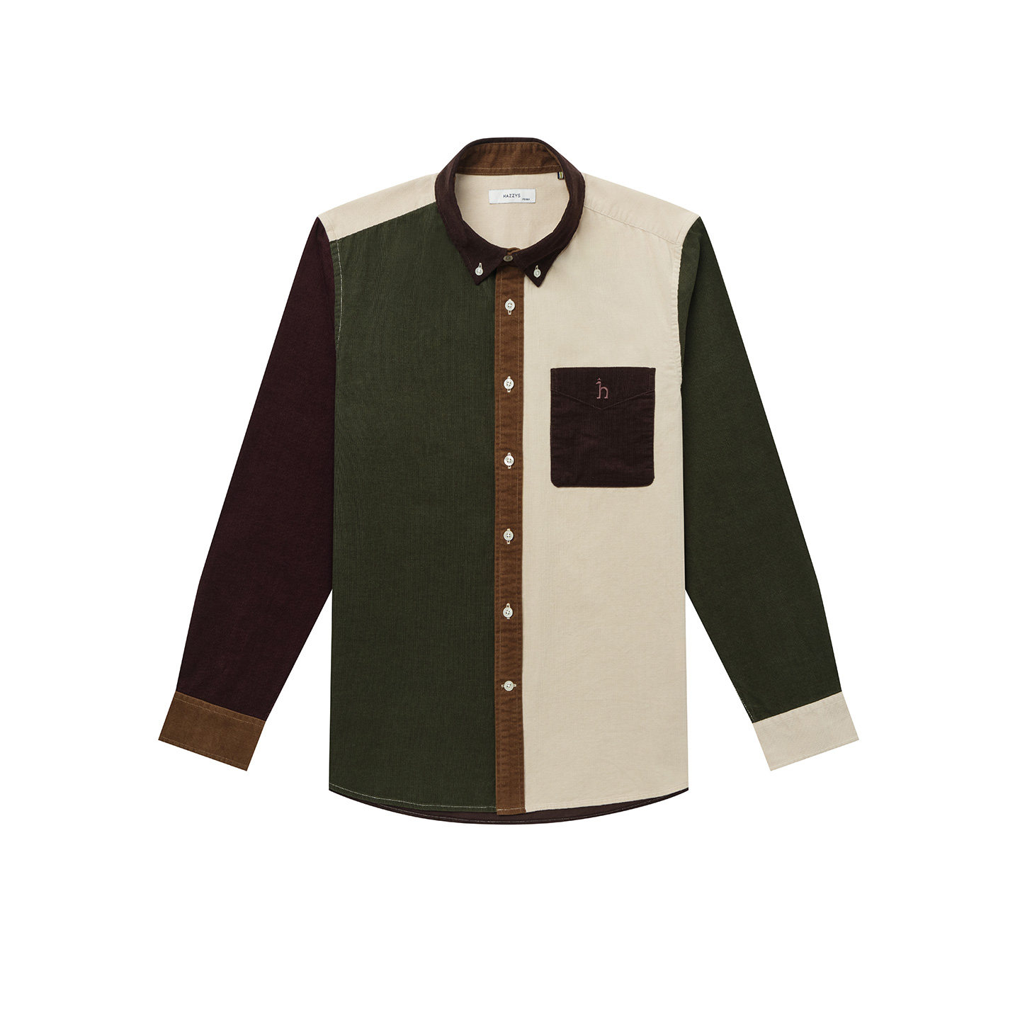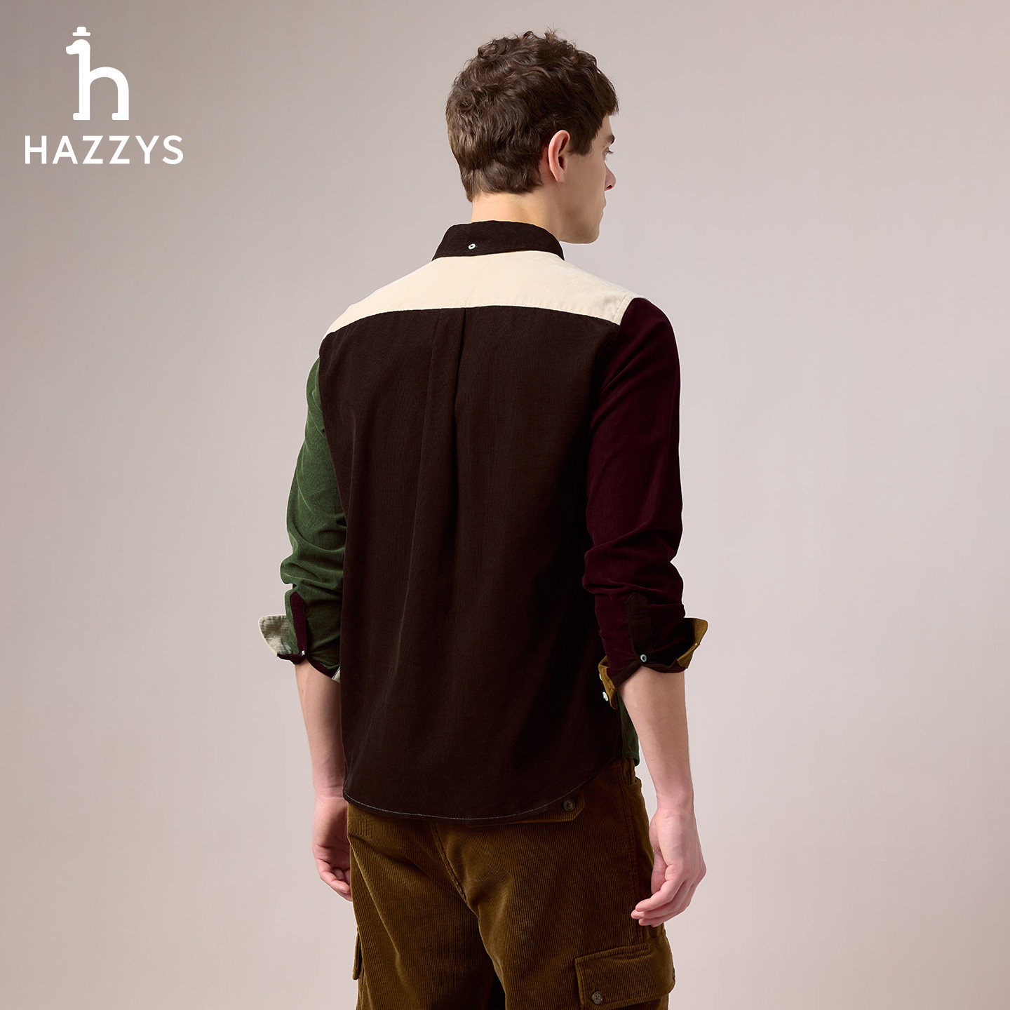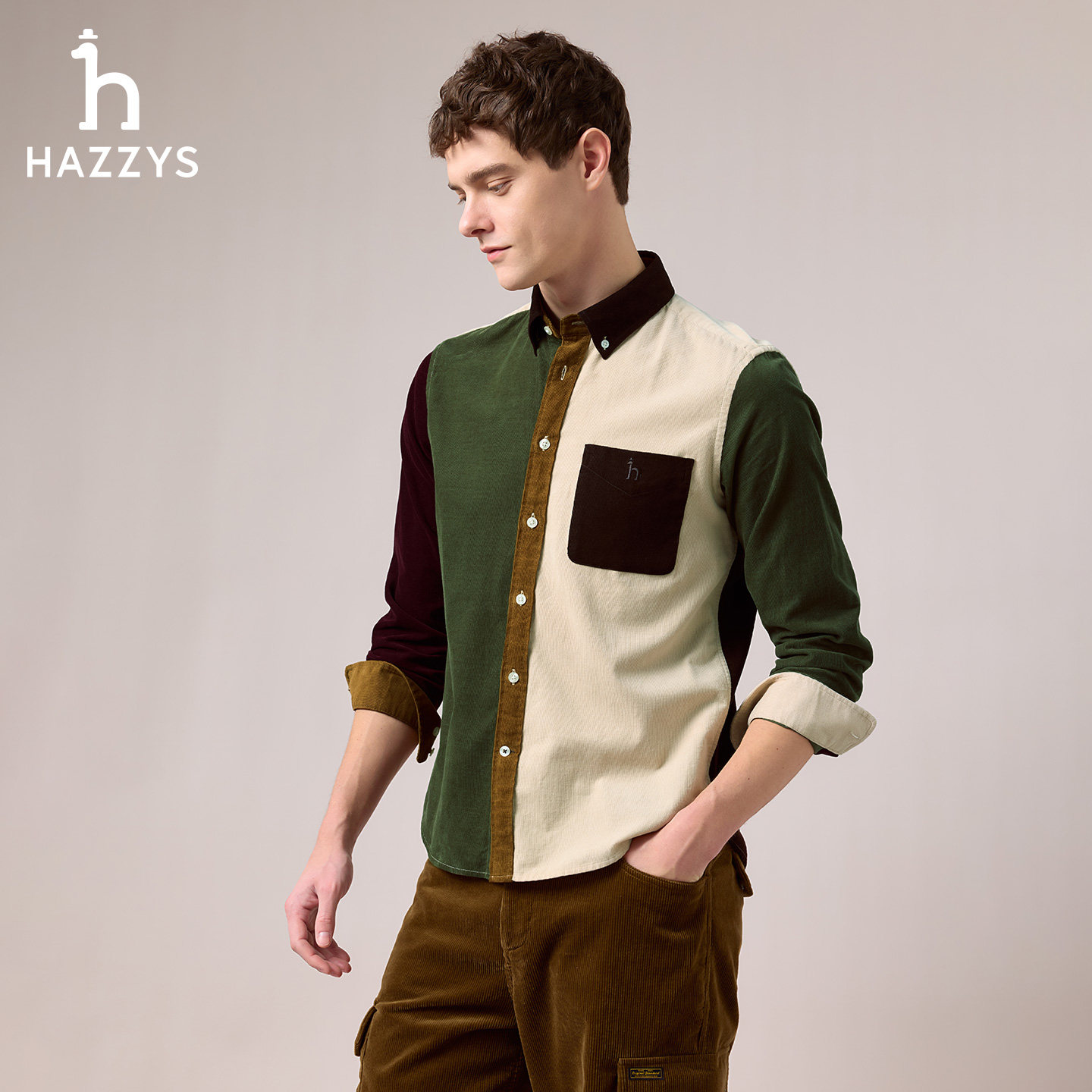 男撞色拼接灯芯绒长袖 新品 HAZZYS哈吉斯2025秋季 衬衫 商场同款