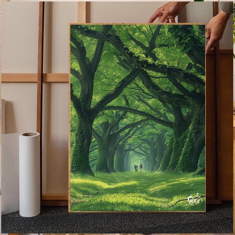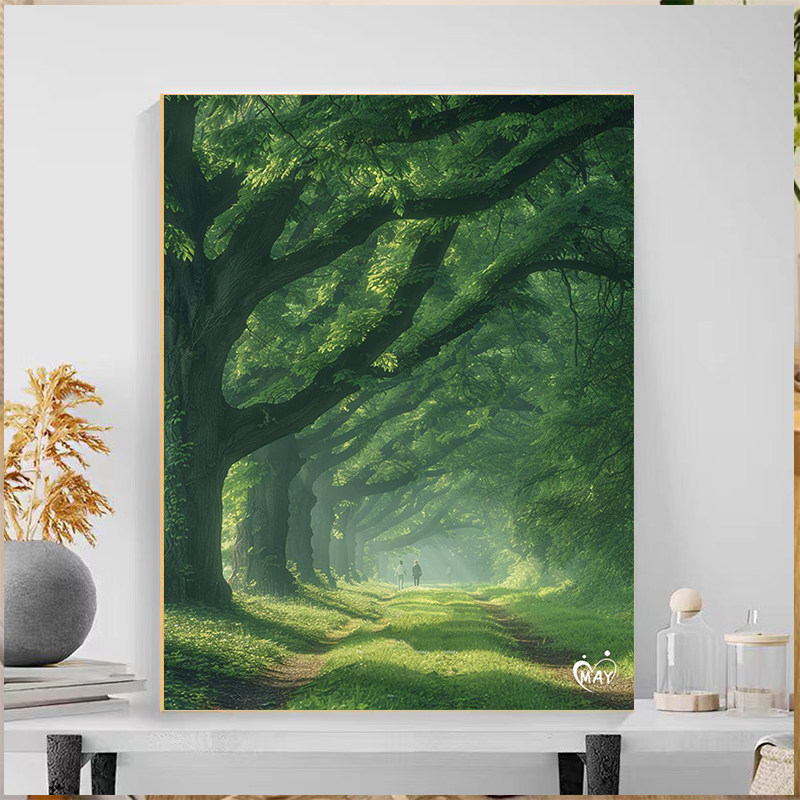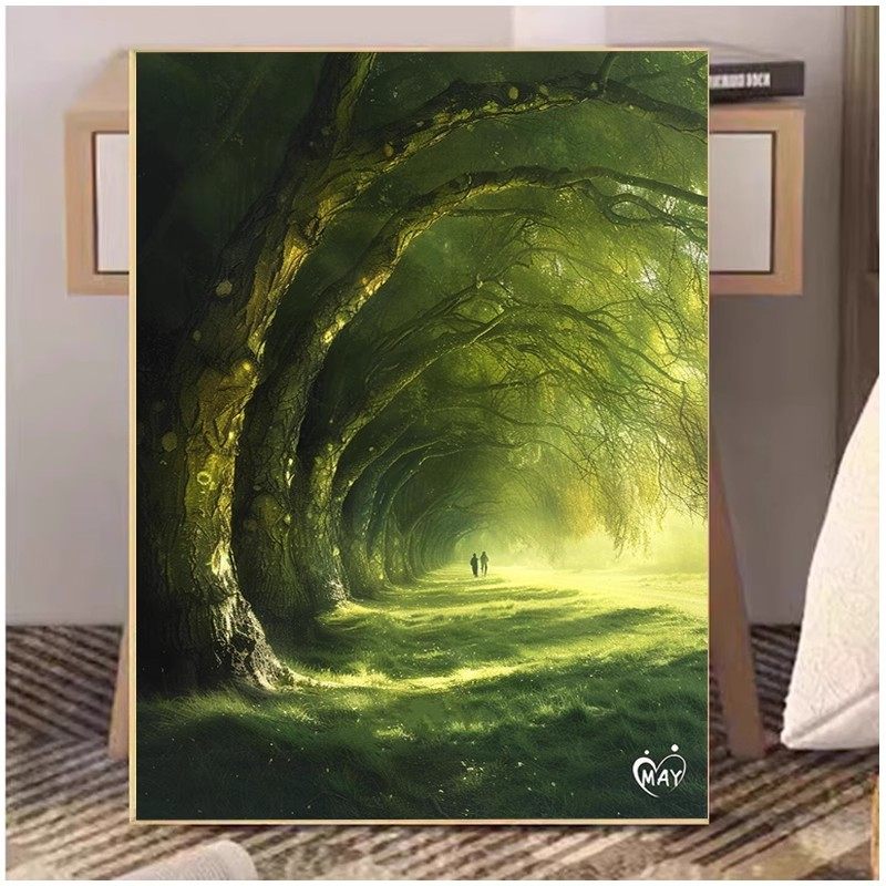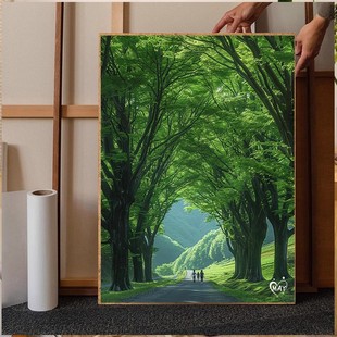 林荫大道成品装 饰画仿油画风景宫崎骏绿色森林唯美卧室客厅摆挂画