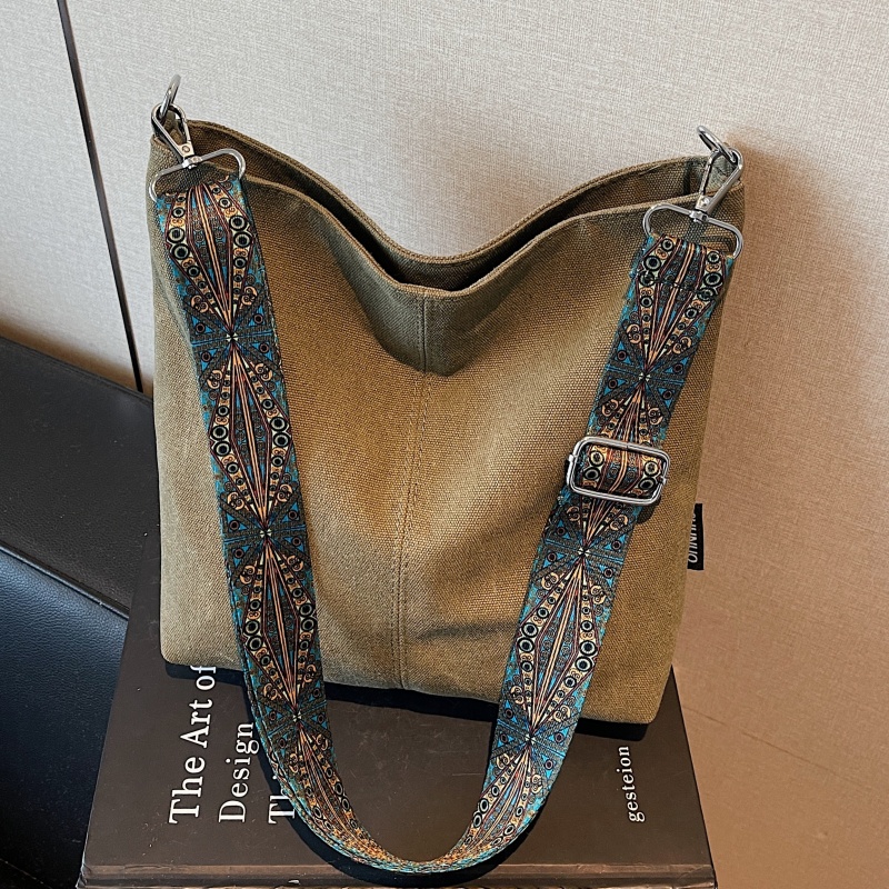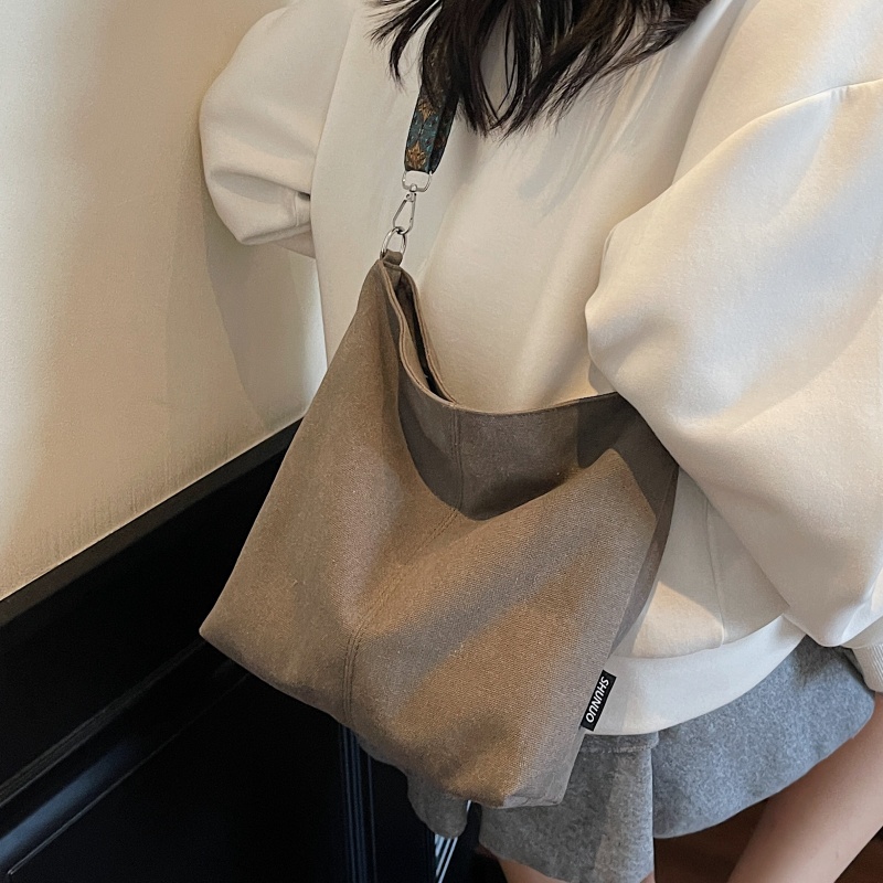 休闲大容量帆布托特包包女2025新款 秋冬通勤单肩包外出手提购物袋