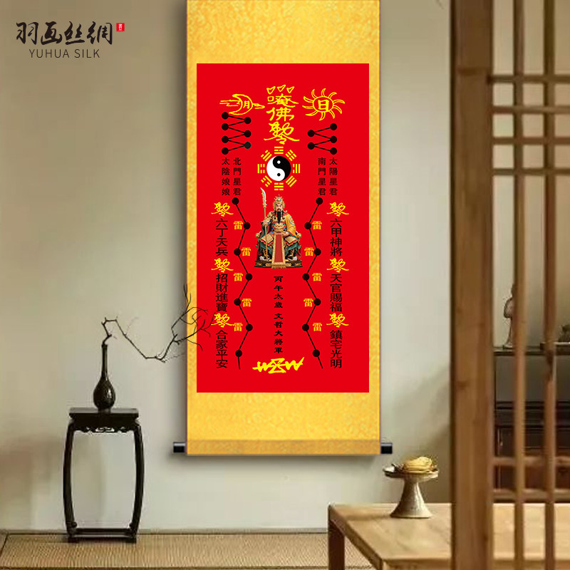 定制中国特色出国礼品新中式 饰画丝绸卷轴客厅挂画礼盒 国画玄关装