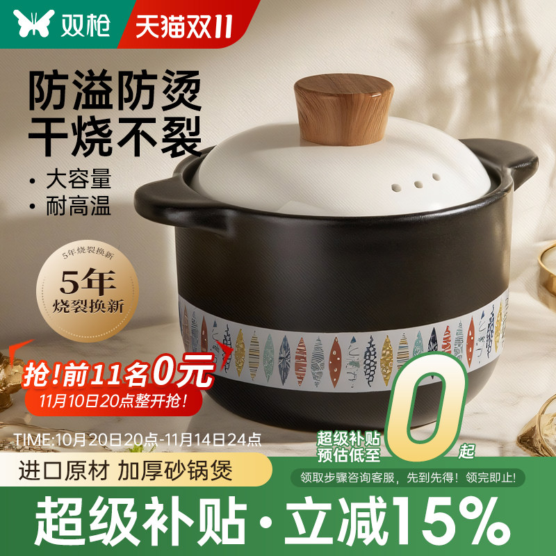 双枪砂锅干烧不裂家用炖锅陶瓷煲仔饭汤煲炖汤锅煲汤锅大 国补