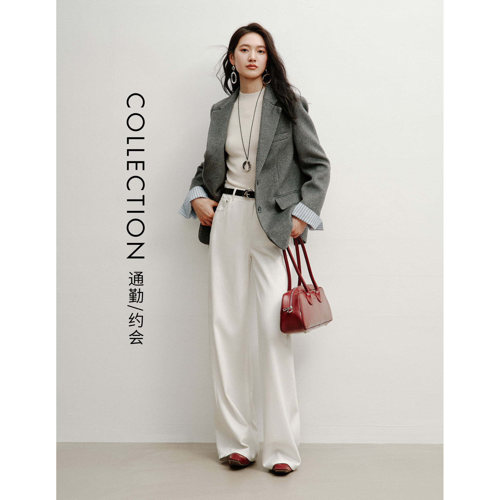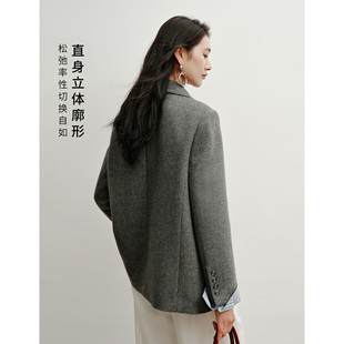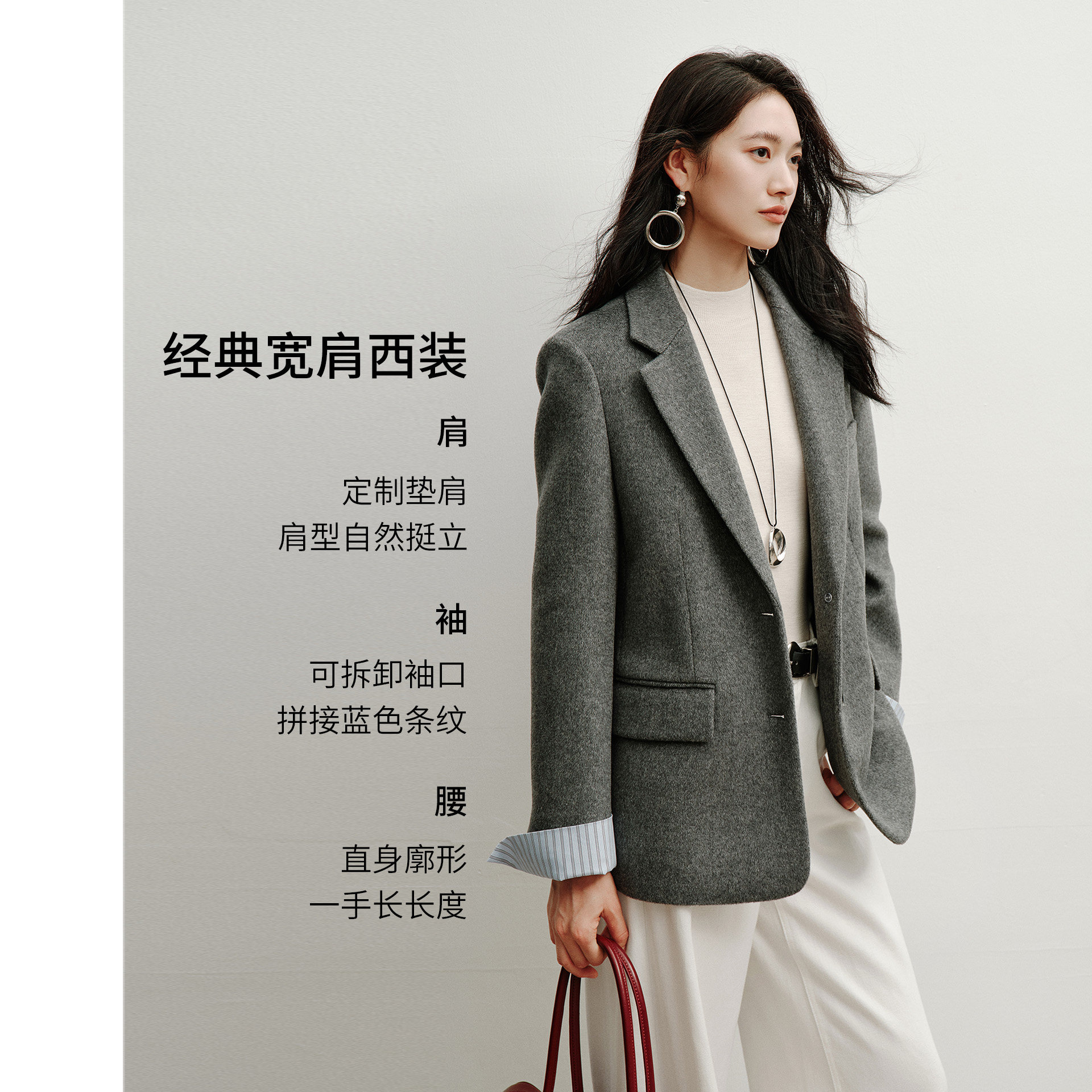 西装 微胖mm秋冬宽松正肩长短款 毛呢大衣外套 百分百女装 DM100大码