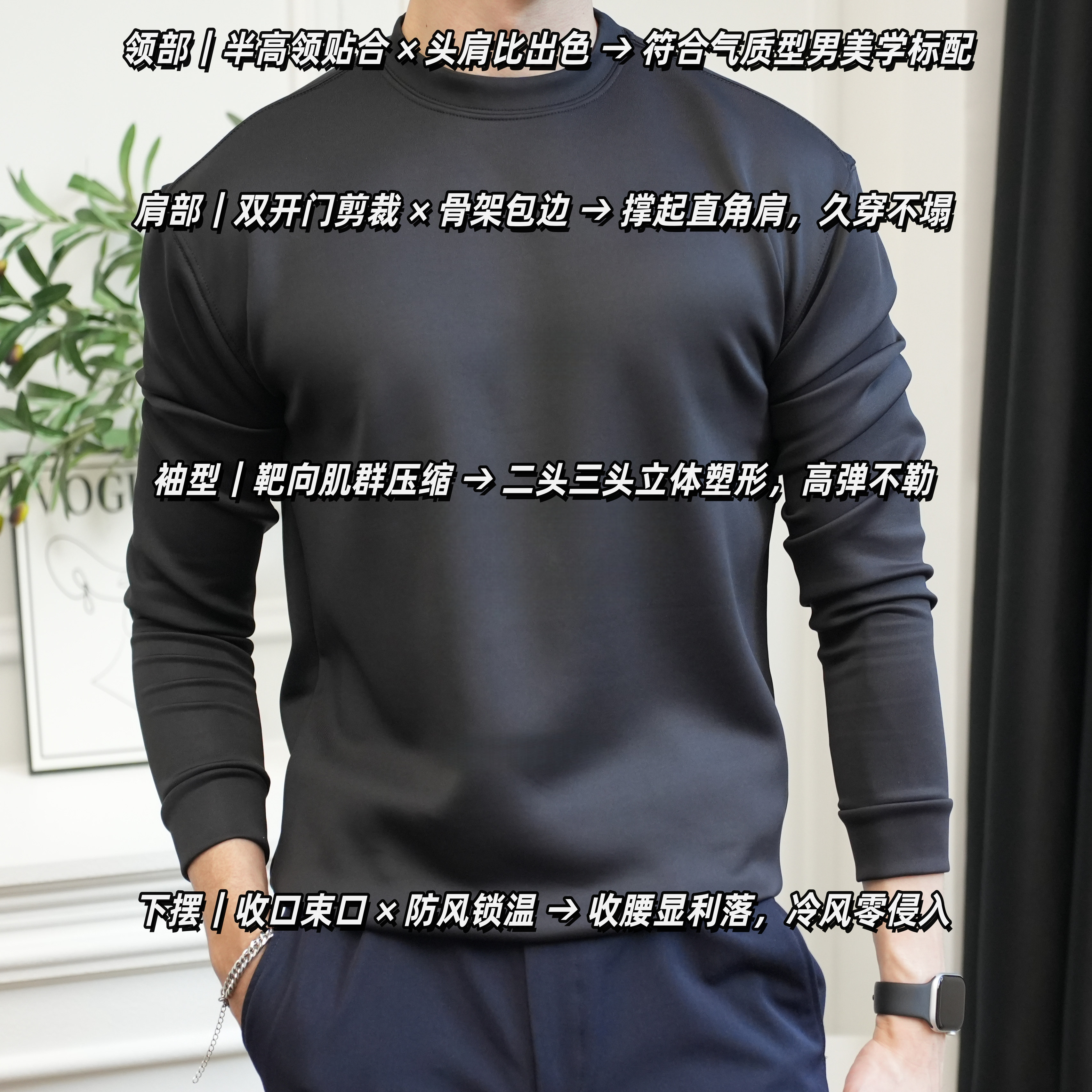50支350克重磅秋冬莫棉空气层高弹圆领打底半高领修身 打底T恤 长袖