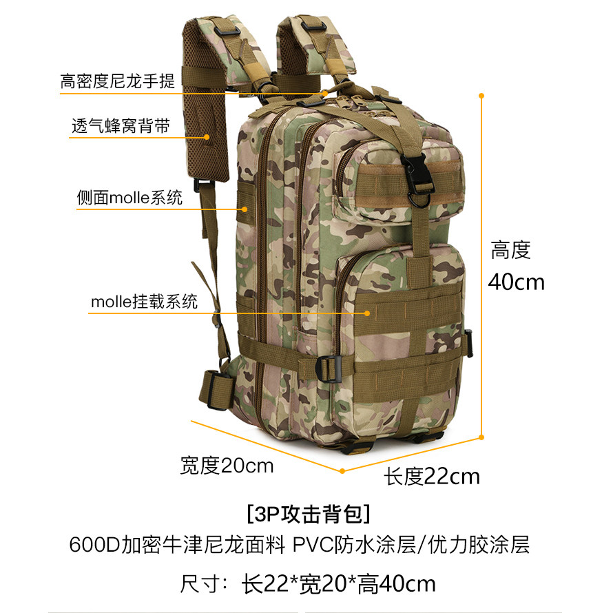 大容量3P战术背包户外军迷作战双肩包登山骑行露营背包防水耐磨