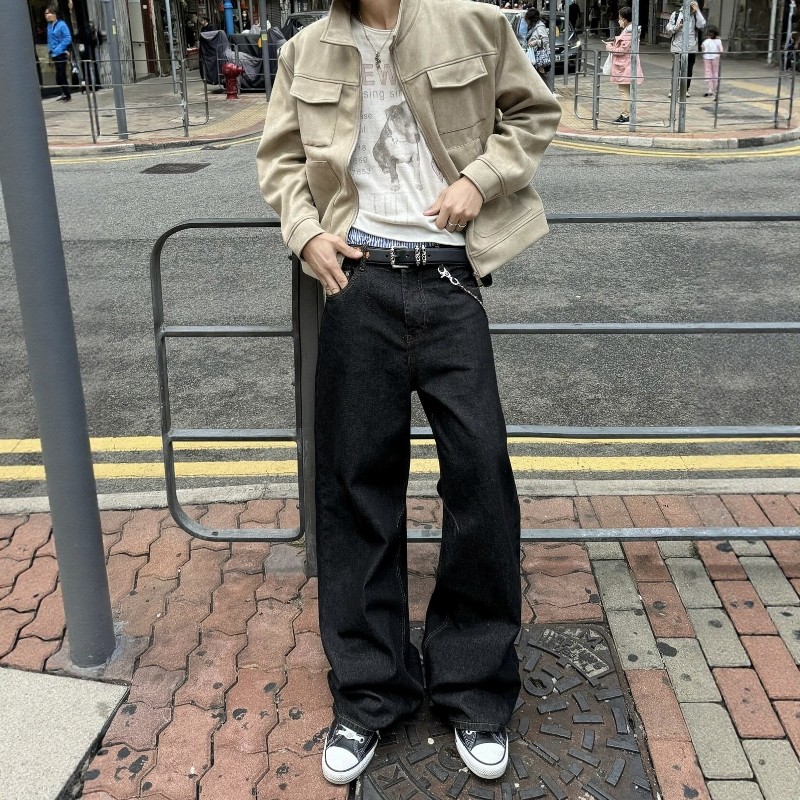 大直筒牛仔裤 加绒上新 2025秋冬新款 高腰阔腿牛仔裤 太平鸟广角裤