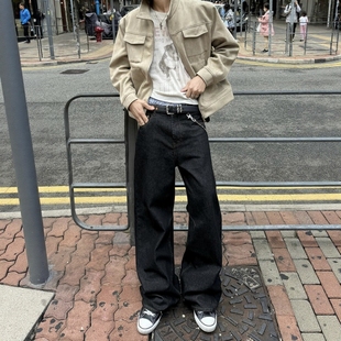 子直筒加绒牛仔裤 BJHG不计后果美拉德复古水洗牛仔裤 裤 冬季 女 男款