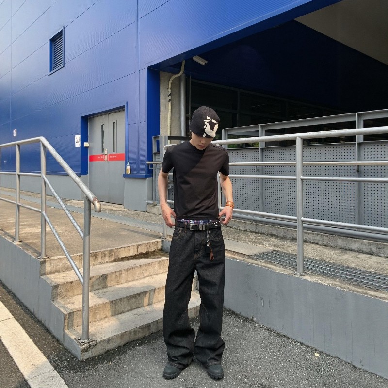 子男微喇直筒宽松原色阔腿大码 深蓝裤 原牛加绒牛仔裤 LOADMIND美式