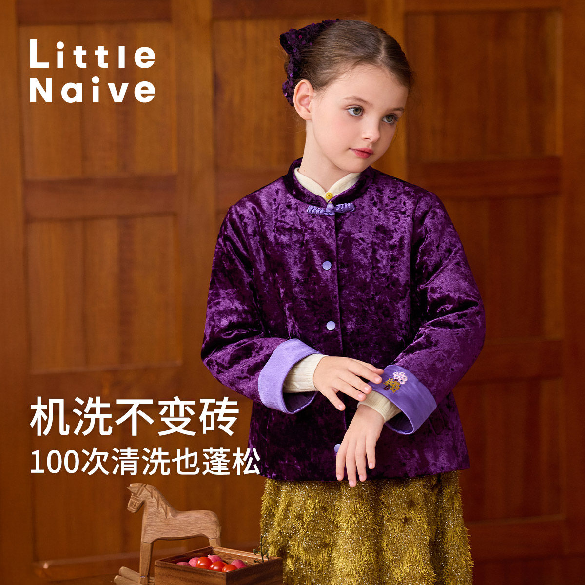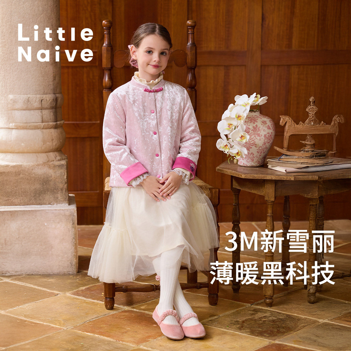 棉服 棉袄女童新中式 Little Naive儿童3M夹棉新雪丽保暖外套冬季