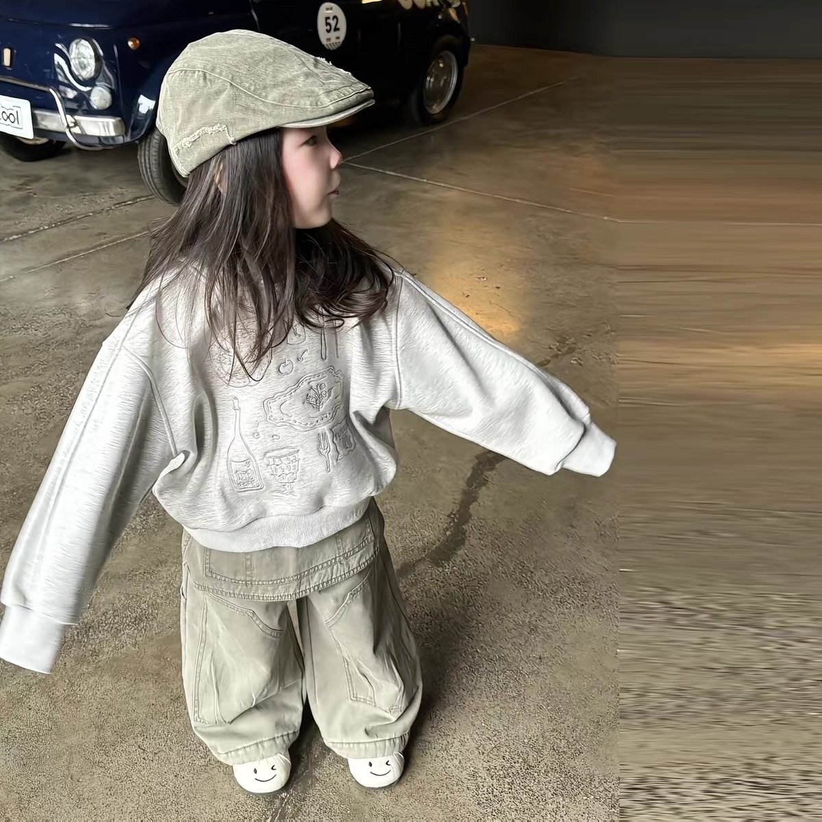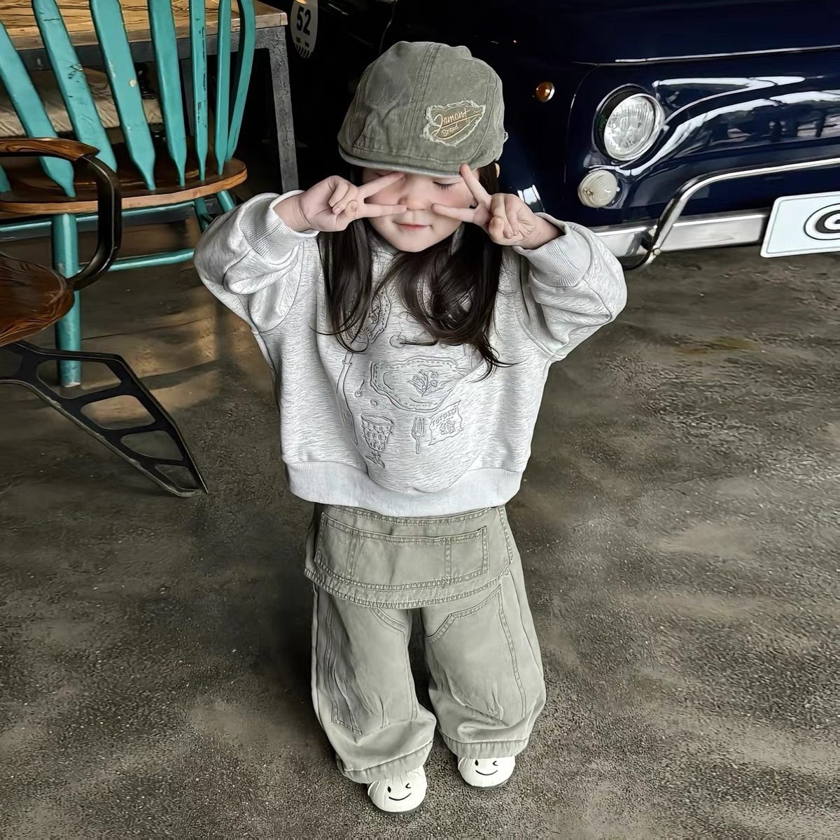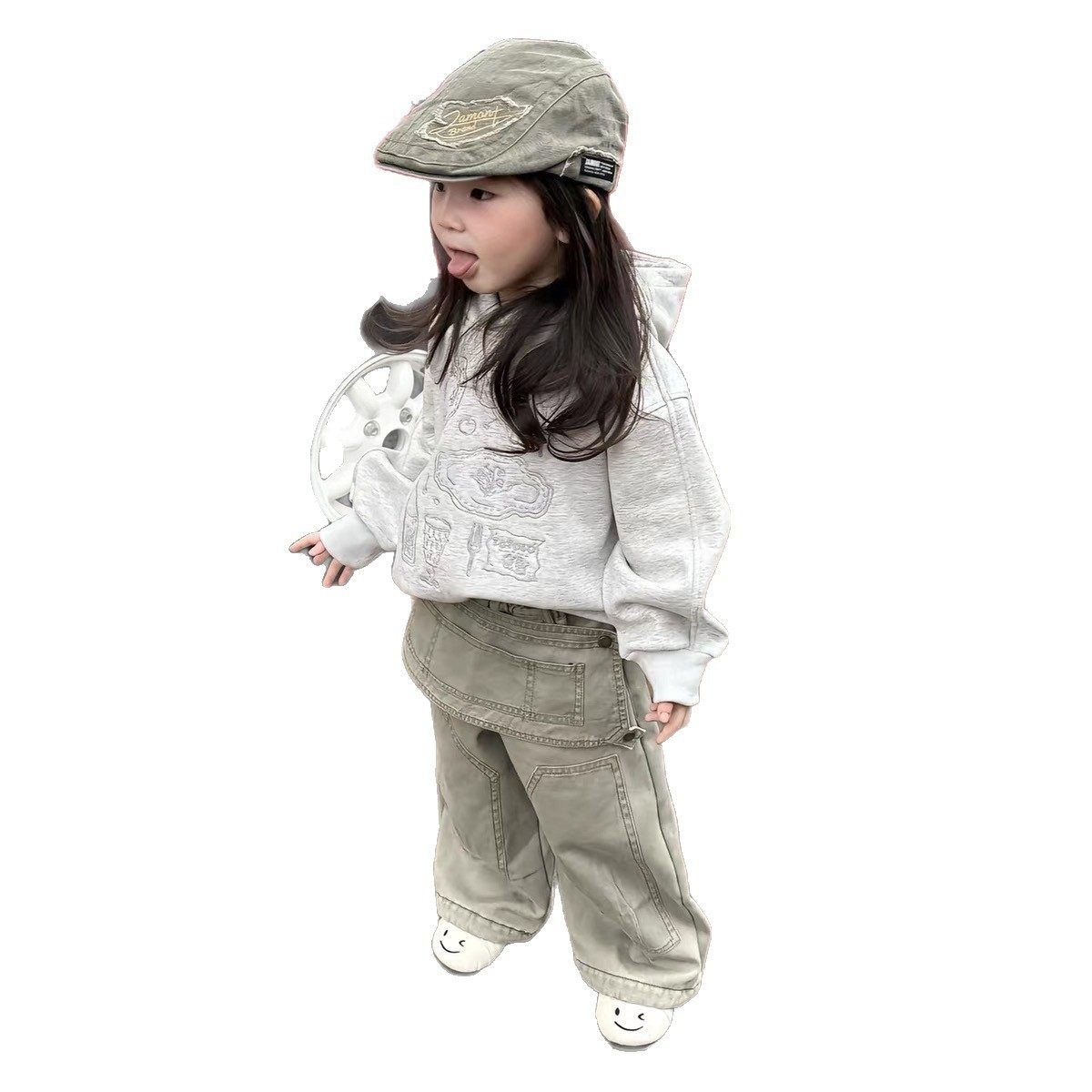童装 印花连帽卫衣屁帘牛仔裤 2026女童冬季 加绒加厚套装 潮 新款 韩版