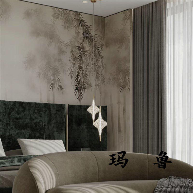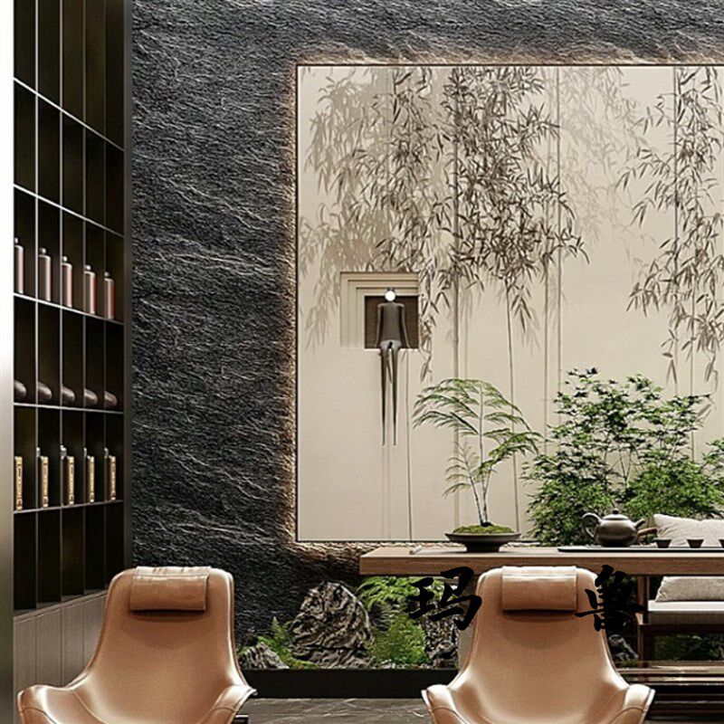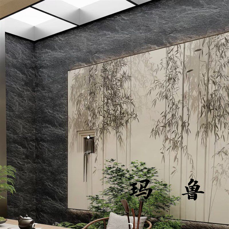 中式 饰壁画卧室背景画 竹子壁纸茶室餐厅墙贴布景客厅背景墙玄关装