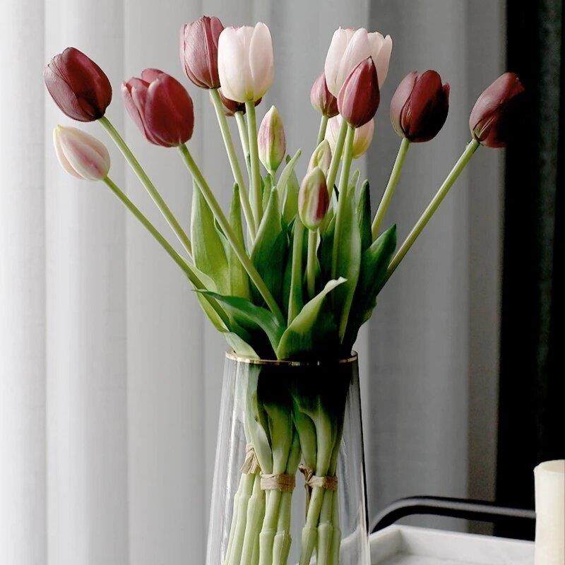 仿真玫瑰花情人节塑料花束家居摆件假花客厅餐桌插花干花摆设装 饰