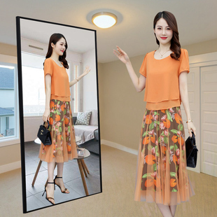 新款 中年40岁女装 两件套裙子2023夏季 连衣裙年轻洋气质妈妈装 夏款