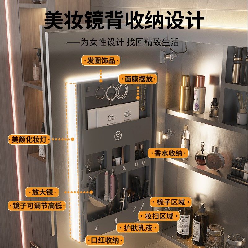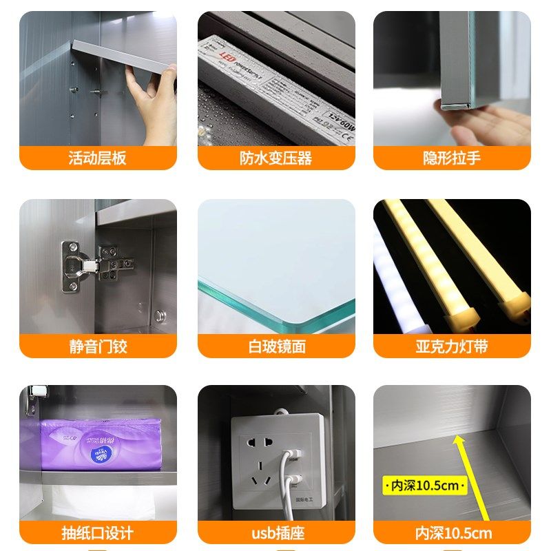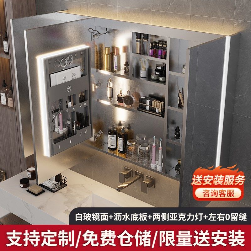 智能浴室镜柜挂墙式 带背光灯防雾卫生间镜子置物架单独收纳一体柜