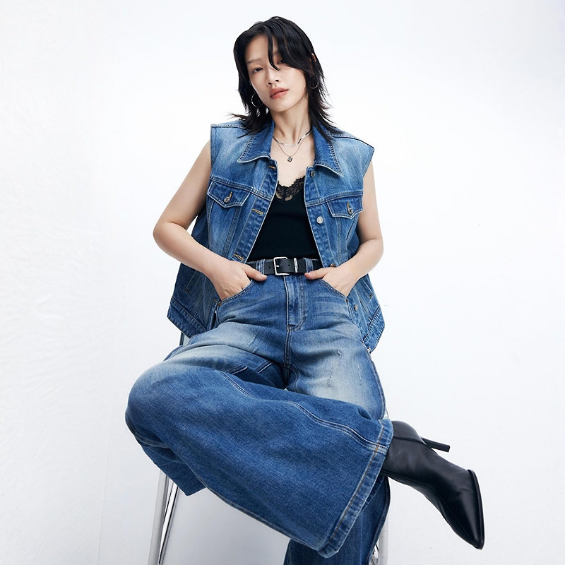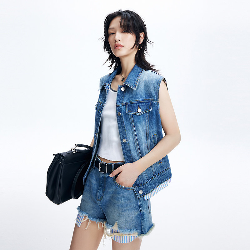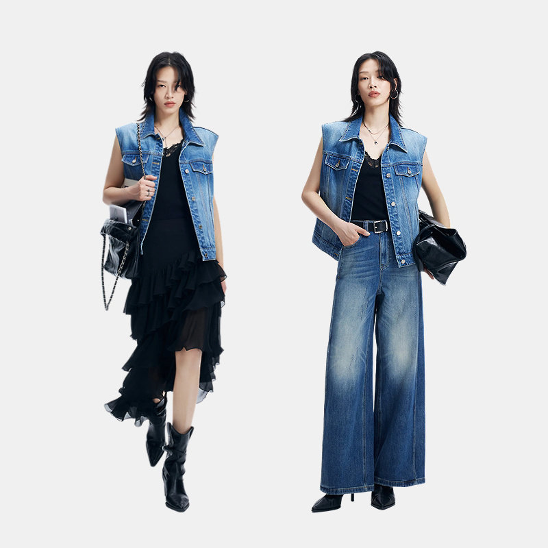 叠穿外套 复古牛仔马甲袋盖设计无袖 FF仿佛马甲女2026春季 新款