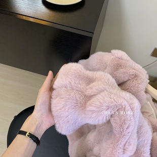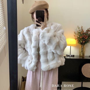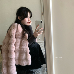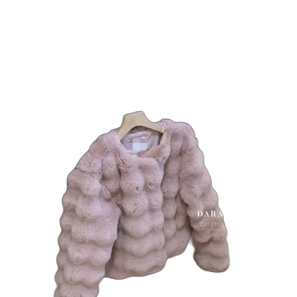 DARA 新年战袍韩国富家千金浅粉色圆领毛毛球球短外套S1219 ROSE