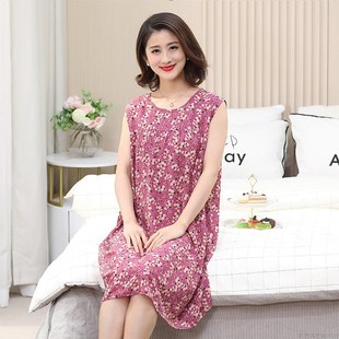夏天夏款 长款 纯棉短袖 大码 条纹休闲可外穿 薄款 睡裙女睡衣裙子夏季