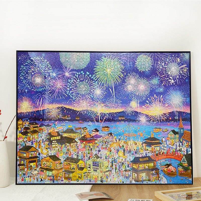 花火夜游拼图框2000片96 68cm猫空专用拼图裱框实木相框金属画框