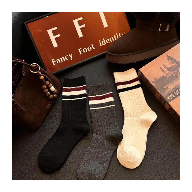 韩版 防臭吸汗休闲竖条纹堆堆月子袜纯糖果色 女士中筒长袜子春秋款