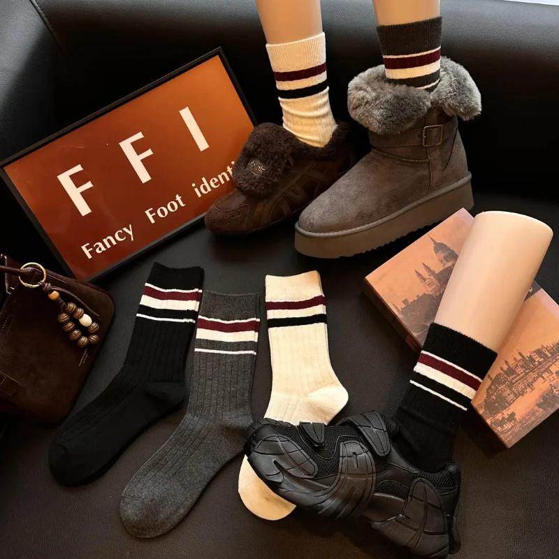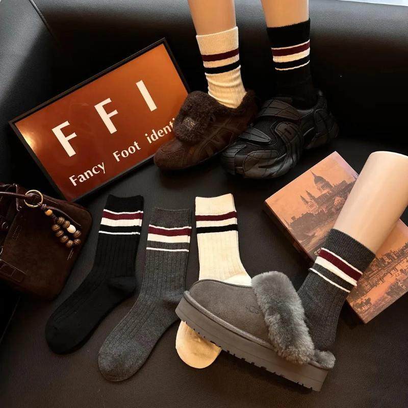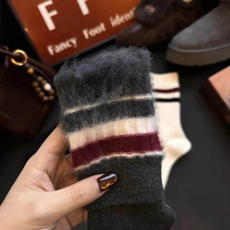 羊毛袜子女冬季 超厚中筒袜加绒加厚保暖棉袜睡眠条纹羊绒月子长袜
