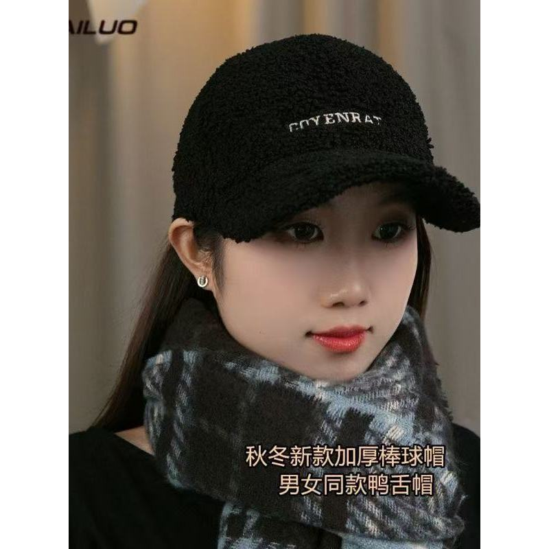韩版 休闲刺绣字母棒球帽子女秋冬加厚保暖羊羔绒鸭舌帽护耳显脸小