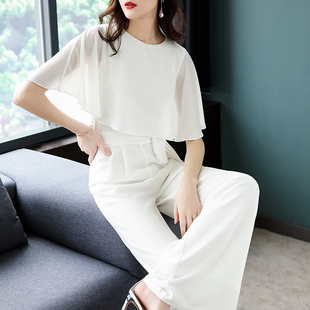 套装 白色阔腿裤 夏装 薄款 气质 美妃雅连体裤 雪纺连衣裤 女夏2021新款