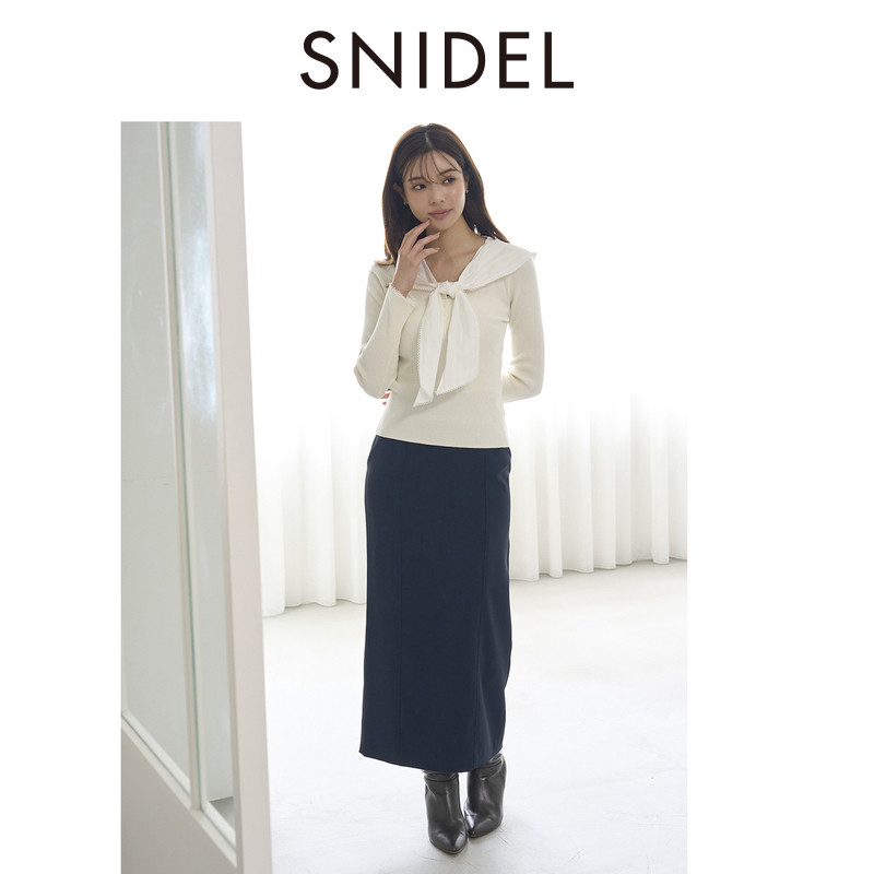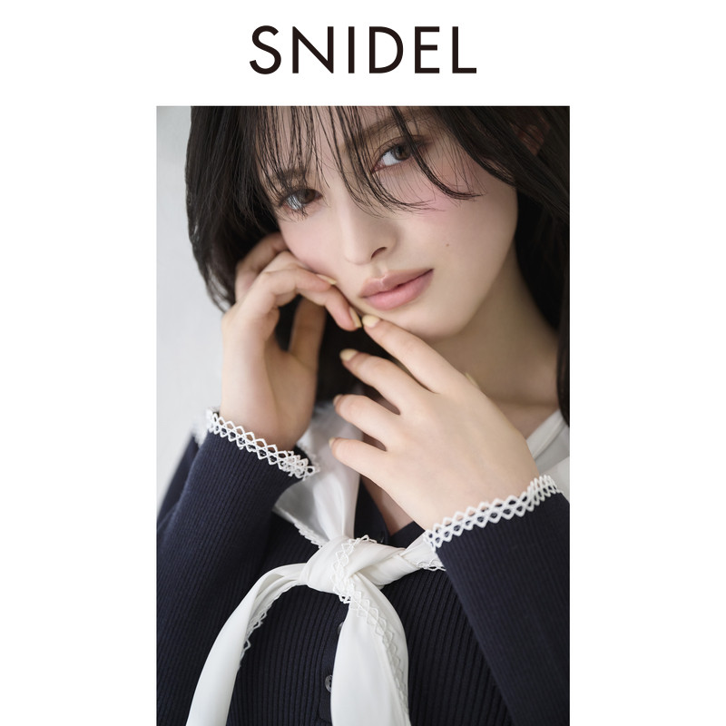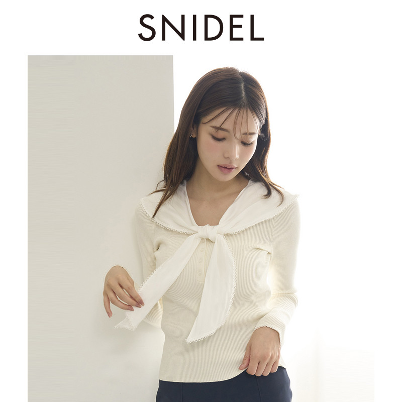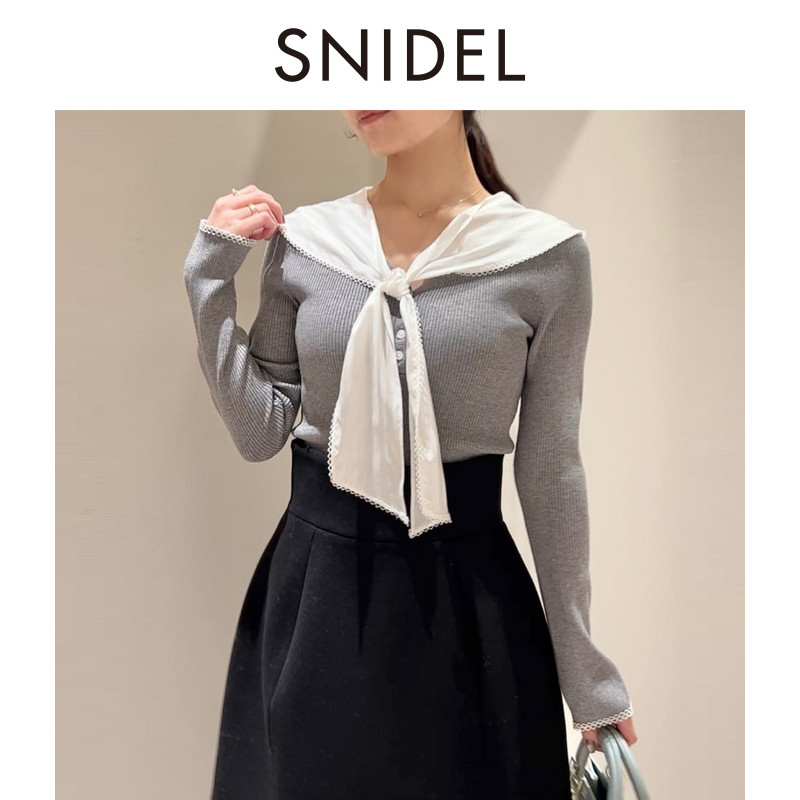 SNIDEL2026春夏新品 上衣SWNT261017 百搭学院风海军领系带针织衫