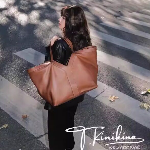Y字真皮托特包女2025新款 松弛感通勤大包大容量单肩手提包