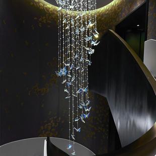 楼梯现代轻DRM奢水晶lfot公墅寓别复蝶式 楼客厅挑空旋转蝴长吊灯