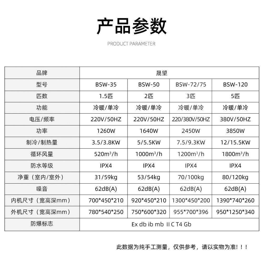 防爆风管机1.5匹2P3P卧式 空调化工电站油漆房防爆风管机 暗装