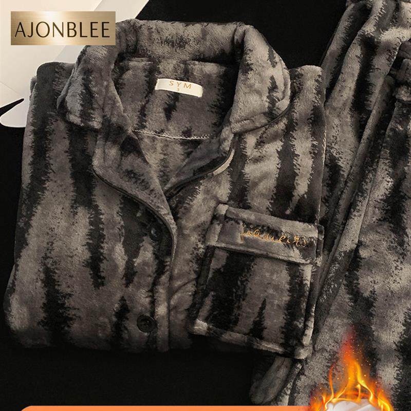 家居服保暖套装 北极绒珊瑚绒睡衣男士 青少年大码 加绒加厚款 秋冬季