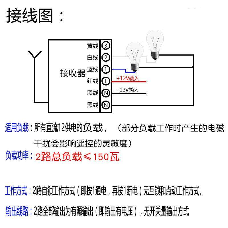 无线遥控开关直流DC12v模块二路配电池穿墙电瓶灯太阳能灯遥控