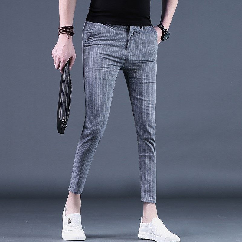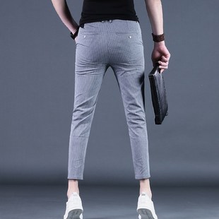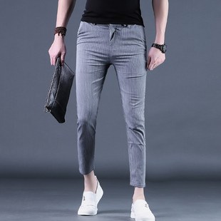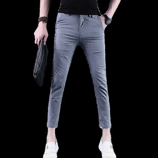 纹休闲裤 2024新款 韩版 九分裤 小脚9分男裤 夏季 潮流修身 夏天薄 男士