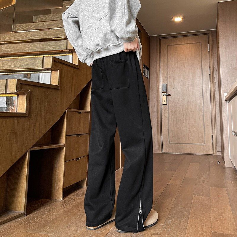 拉链直筒裤 垂感重磅190高个子加长卫裤 休闲宽松运动裤 款 子 男夏季