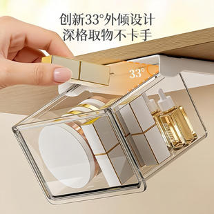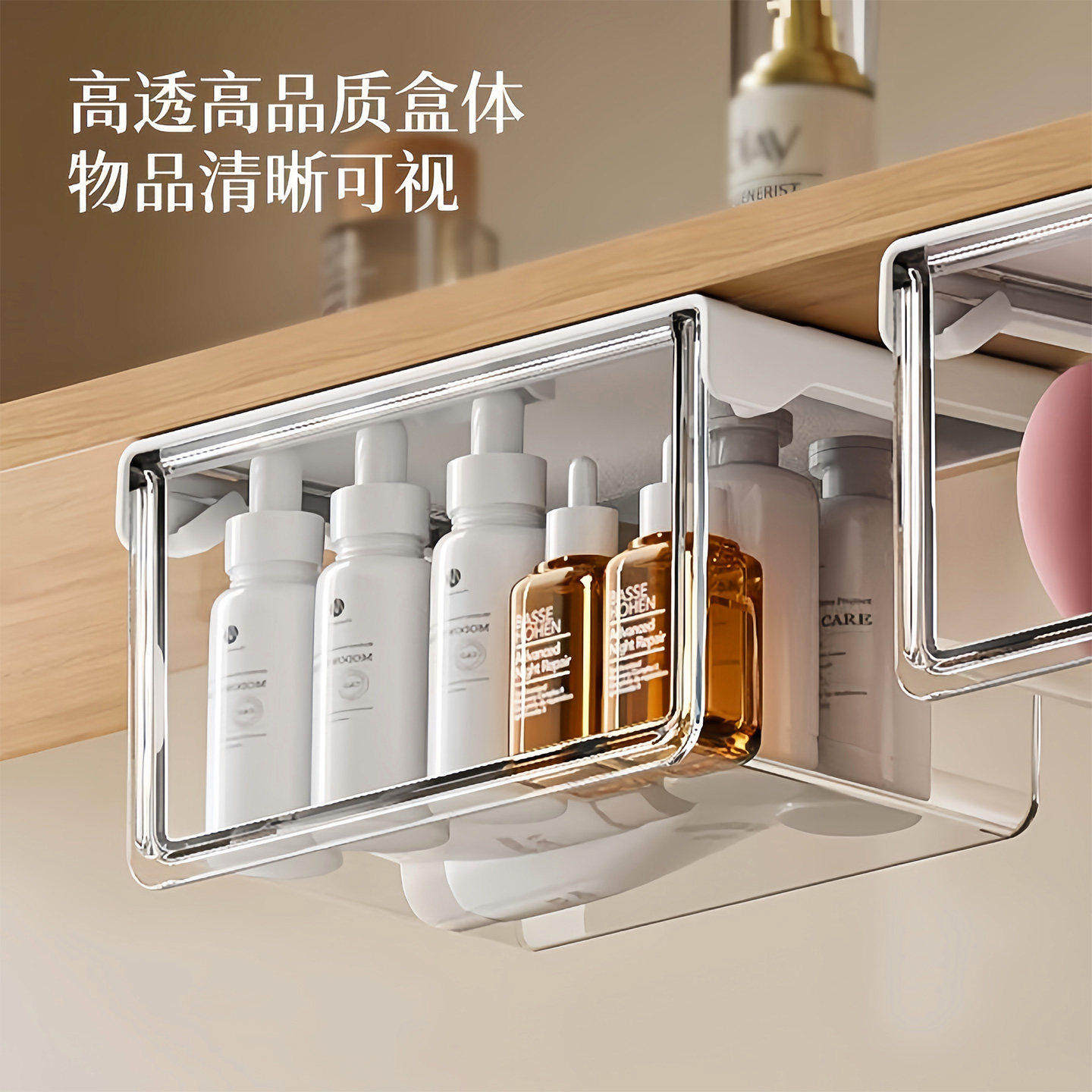 镜柜下抽屉式 收纳盒卫生间化妆品收纳神器卸妆棉签口红透明置物架