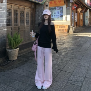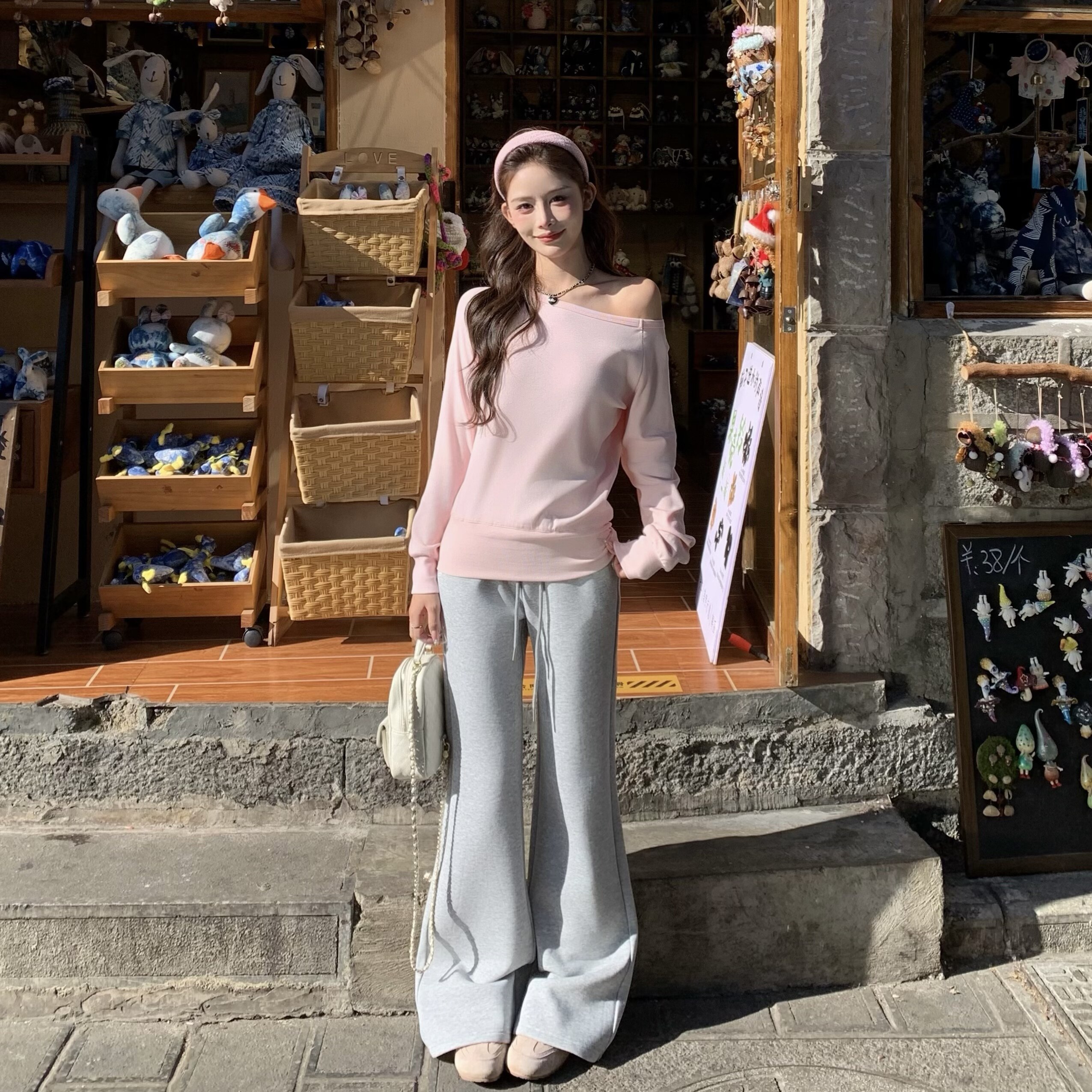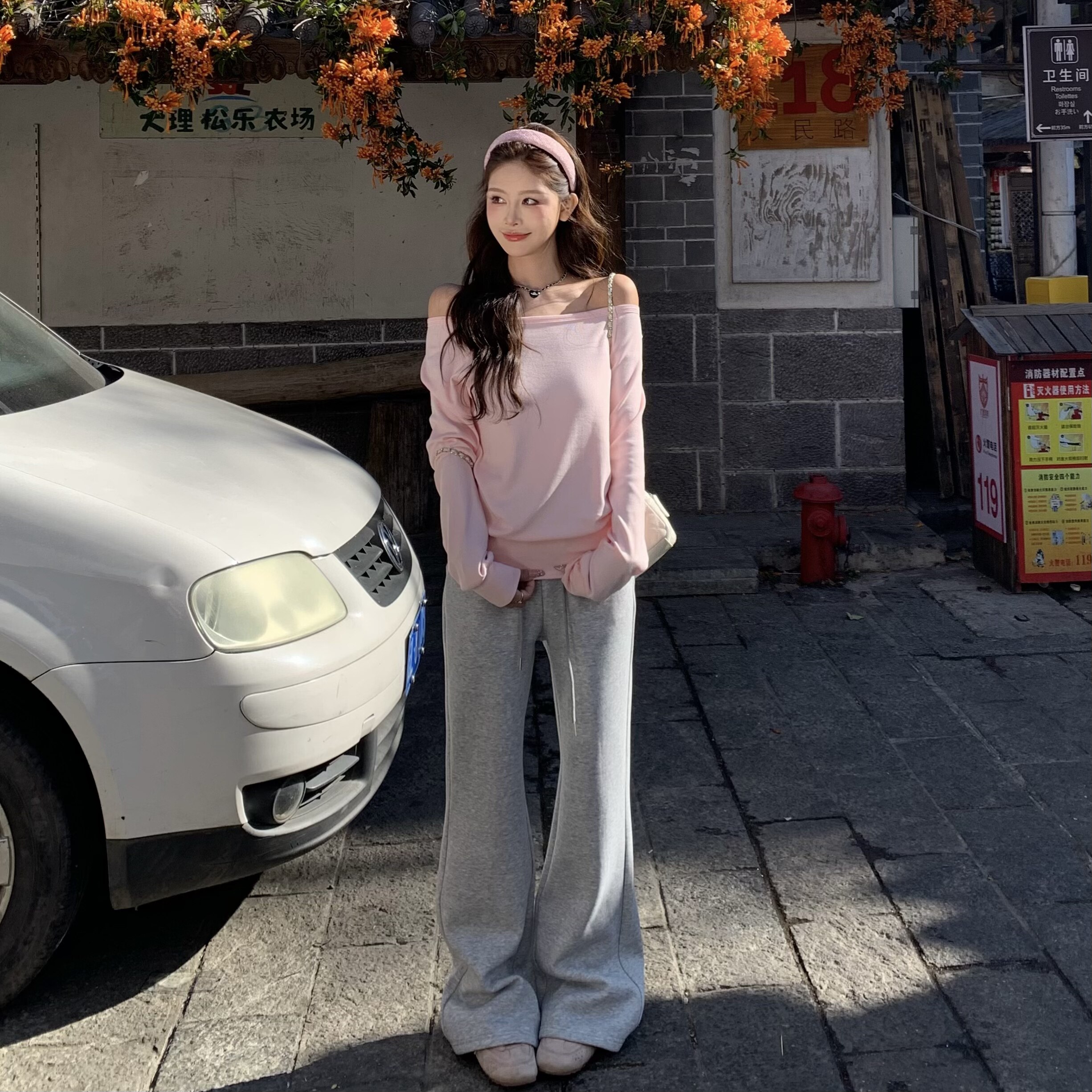 显瘦喇叭裤 女春秋百搭卫裤 子 灰色不贴腿微喇休闲裤 3MER哦哦三妹