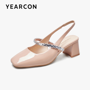 高跟百搭通勤一字扣玛丽珍单鞋 意尔康包头凉鞋 女外穿2026春夏新款