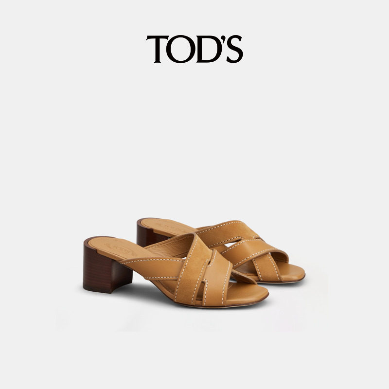 女鞋 TOD 女士皮革中跟凉鞋 2026春夏新品 S官方正品