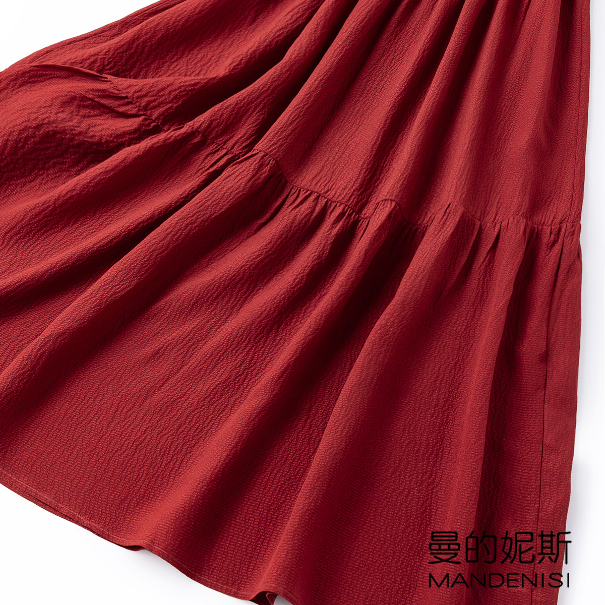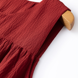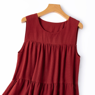 蛋糕裙长连衣裙 复古日系透气泡泡皱真丝肌理感无袖 胶片感红裙