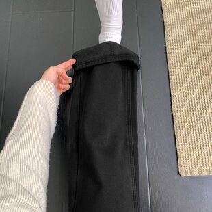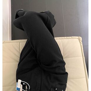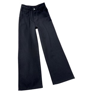 高腰遮胯小个子显瘦阔腿裤 女春秋新款 直筒牛仔裤 拉夏贝尔黑色窄版