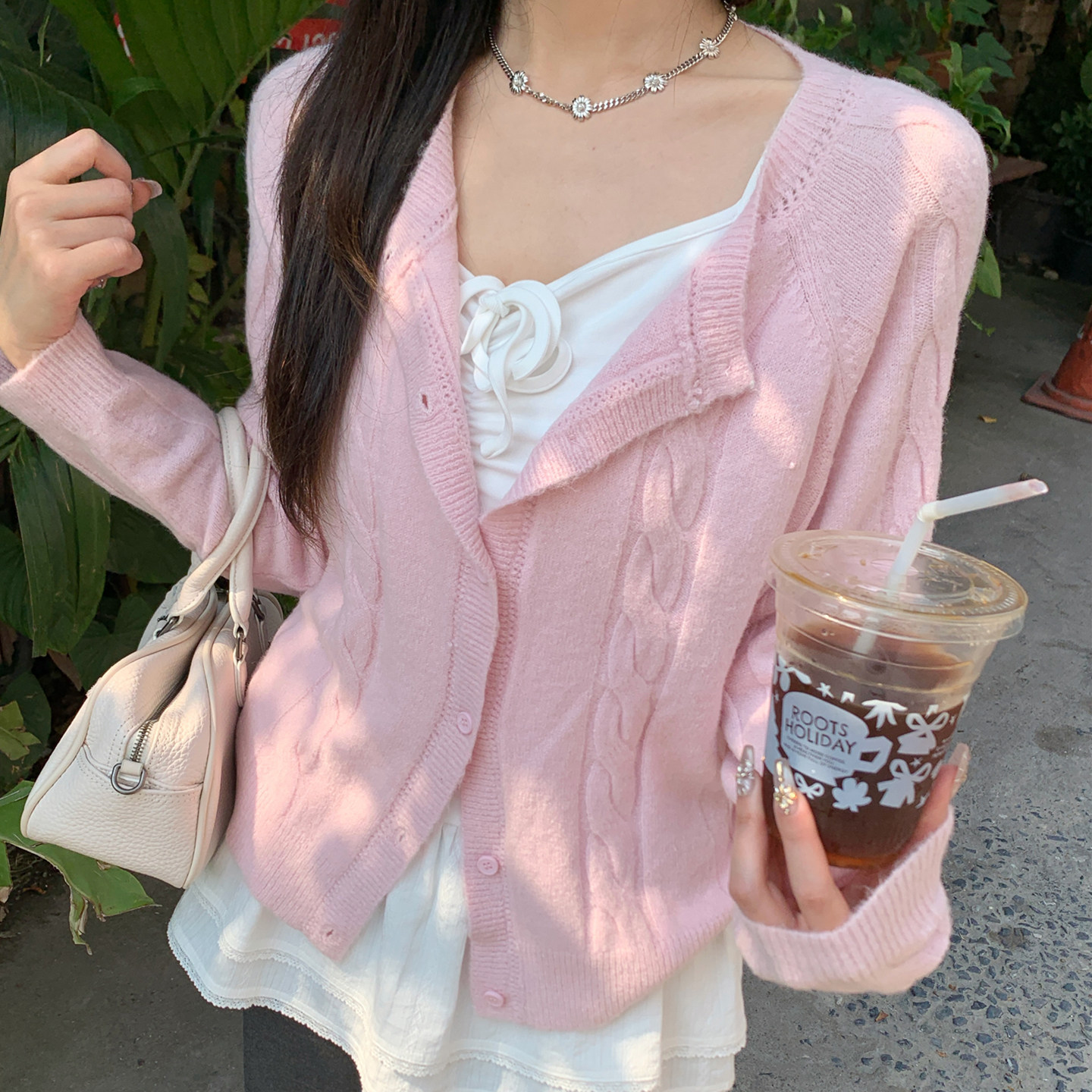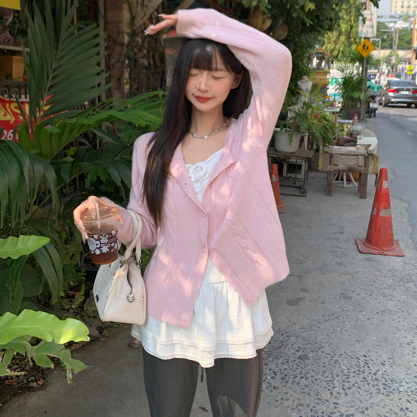 ANA宝藏珍妮 毛衣女生上衣外套 26春夏韩系休闲慵懒绞花薄针织开衫