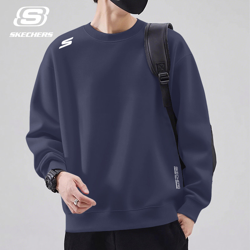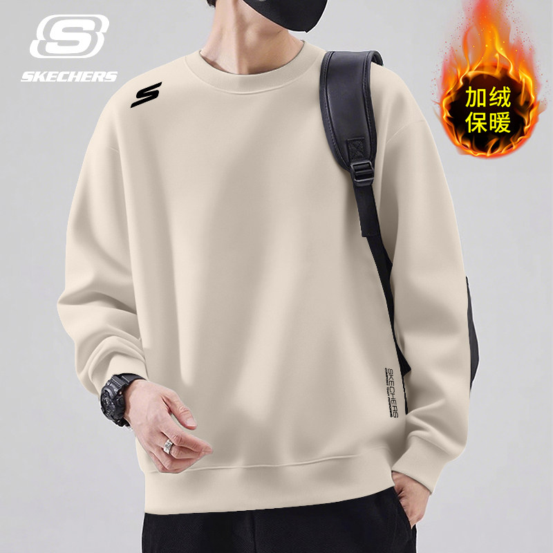 圆领宽松透气打底 加绒套头衫 斯凯奇纯色卫衣男秋冬季 学生潮流长袖