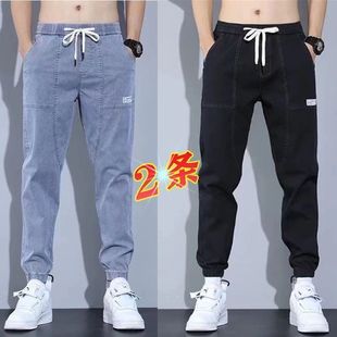 男松紧腰宽松加肥加大号显瘦胖子洗水长裤 GxxH大码 秋冬弯刀牛仔裤