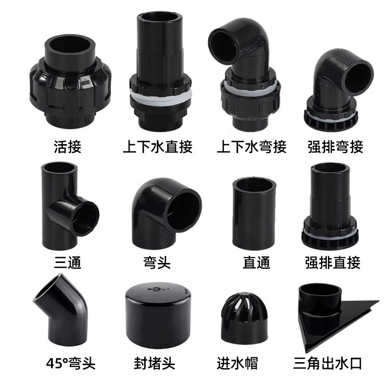 pvc接口鱼缸管件周转箱配件大全管子底过滤进出水上下水三通弯头