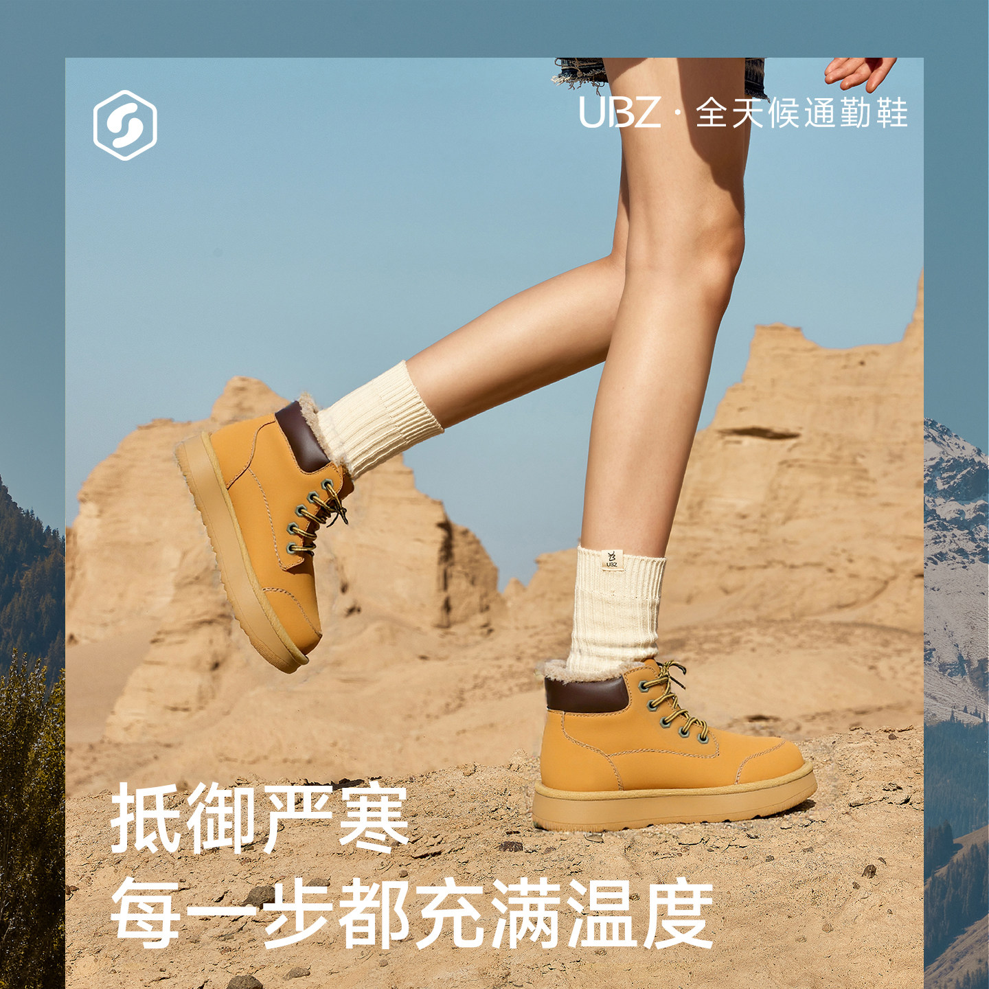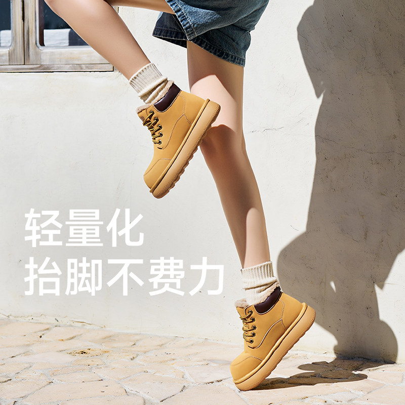靴子短靴棉鞋 骆驼女鞋 马丁靴登山靴加绒鞋 工装 厚底雪地靴女 冬季