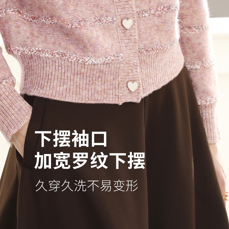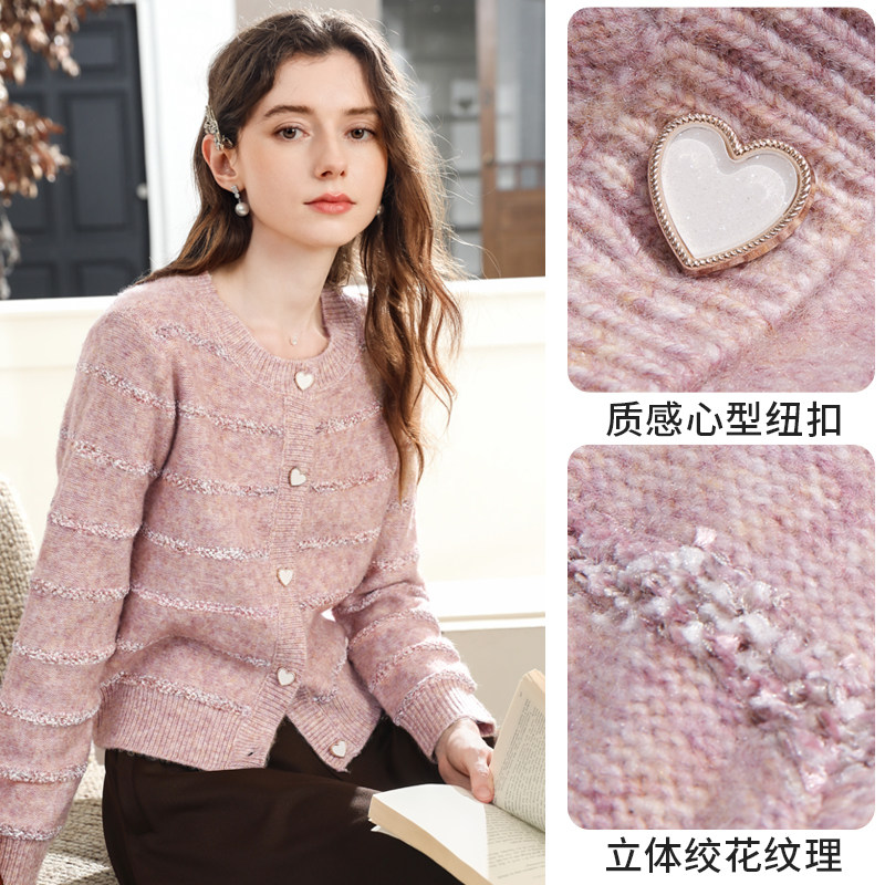 针织衫 艾蓓怡粉色法式 新款 外套女2026春季 好看 小香风花纱毛衣开衫