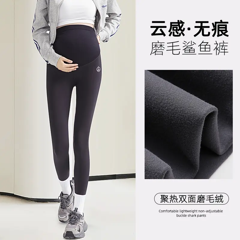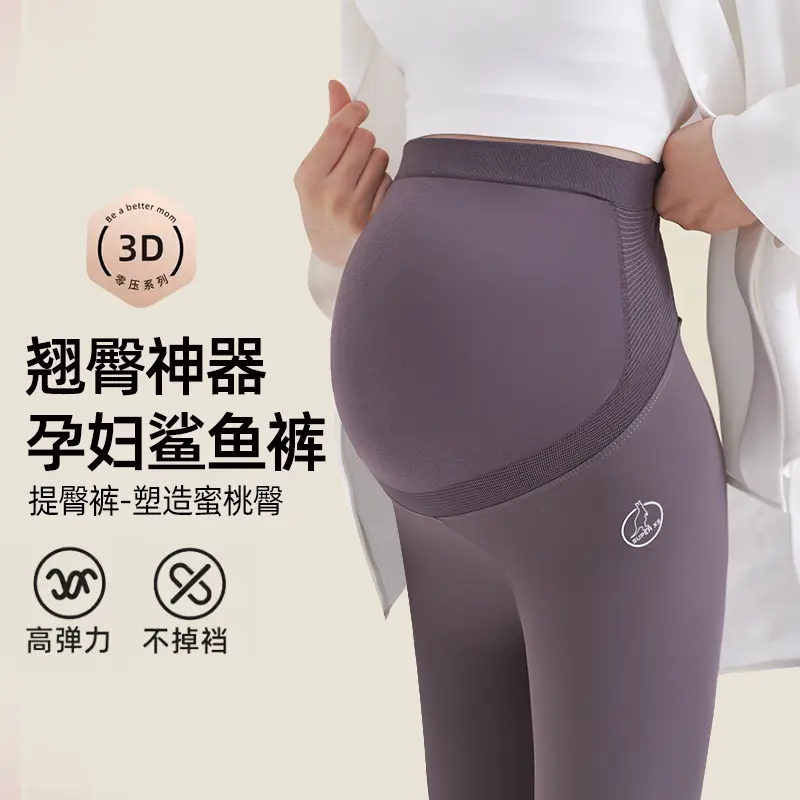 高弹瑜伽裤 曼娜莎孕期打底裤 孕妇裤 超薄提臀鲨鱼裤 百搭 早秋托腹裤